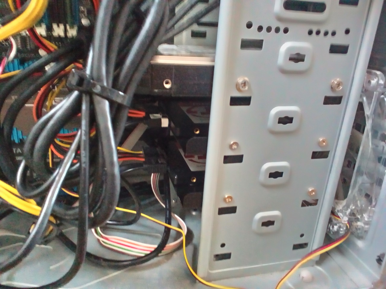 SSD2つとその上にはいままで使ってたHDDです。やはりSSDだけでは容量が足りないと思うのでHDDも併用します。